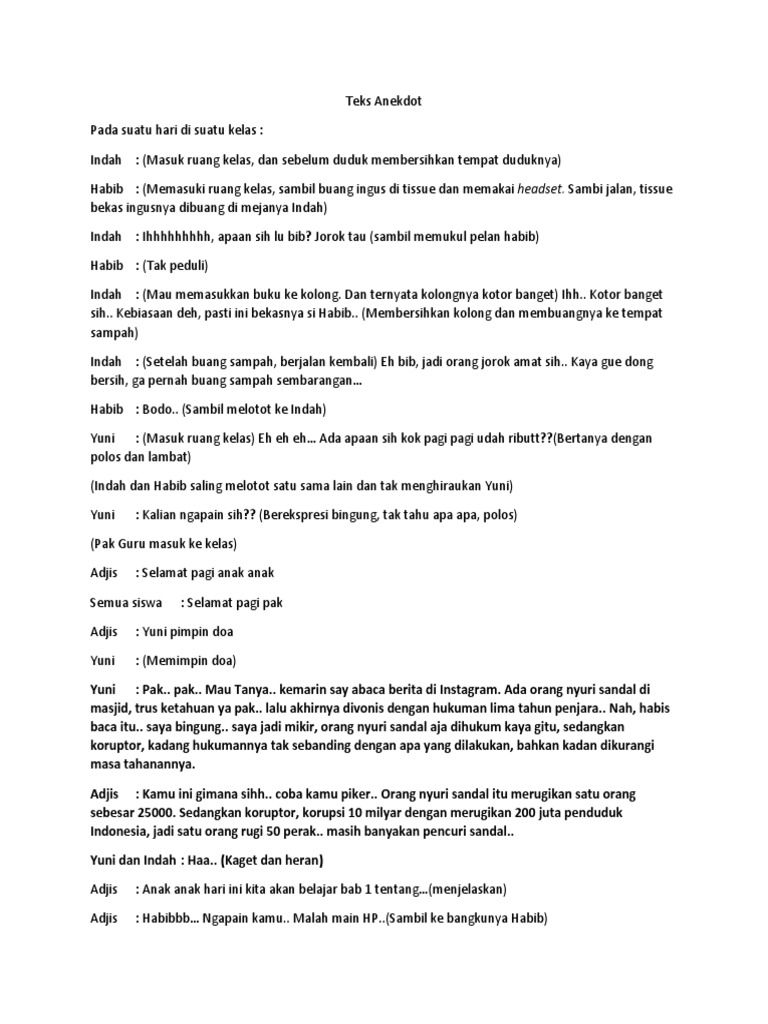 DOC) Contoh naskah drama anekdot “Lucunya Negeri ini” untuk 4 orang lebih | Meita Meita - Academia.edu