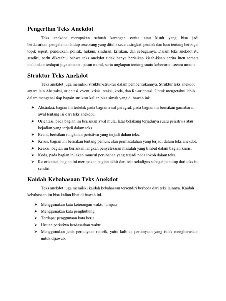 DOC) MODUL BAHASA INDONESIA X Teks Anekdot | LUKMAN FILES - Academia.edu