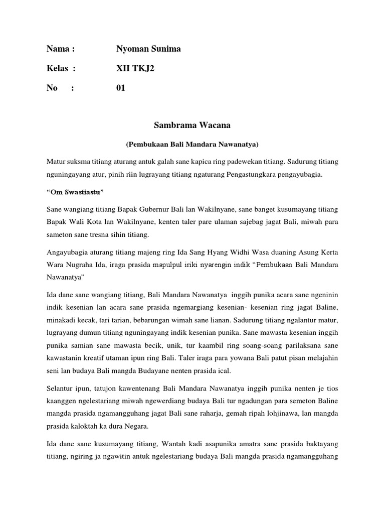 Tugas Mekarya Teks Sembrama Wacana (Nyooman Sunima, 01)