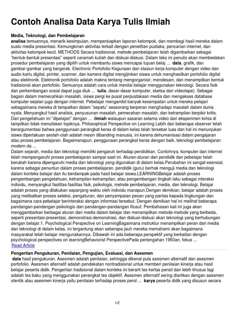 Contoh Analisa Data Karya Tulis Ilmiah
