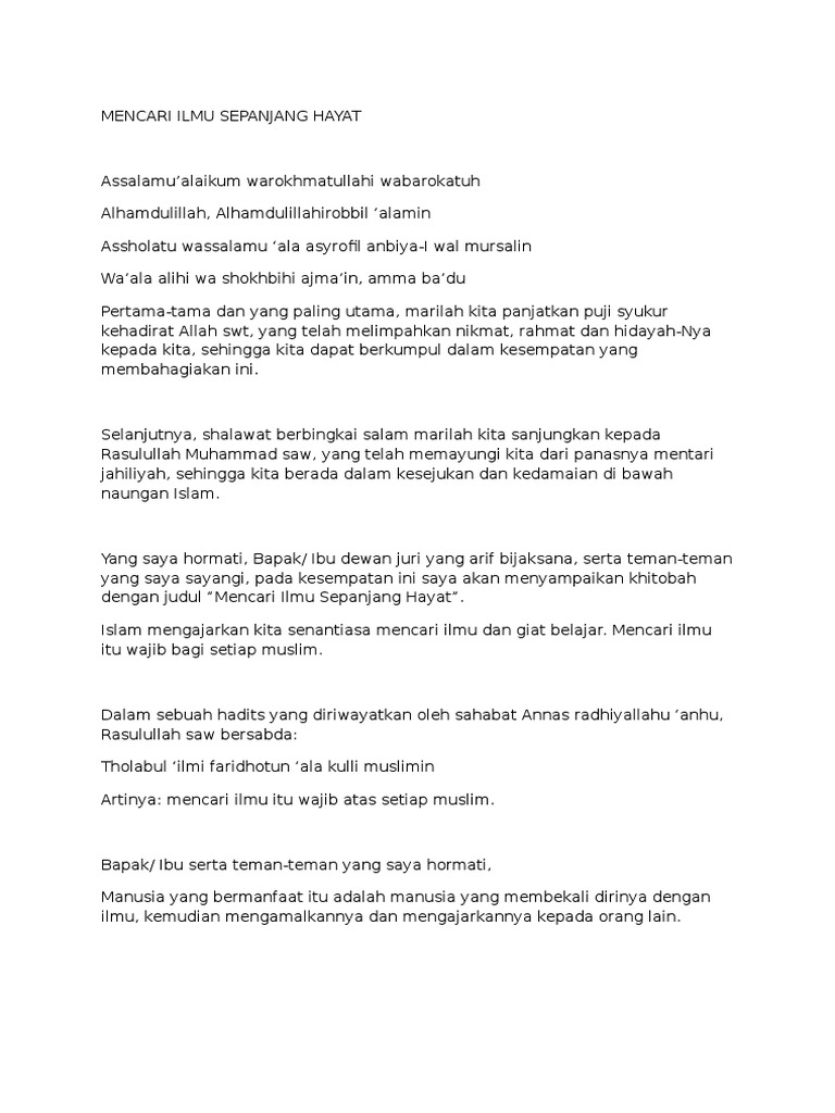 DOC) Contoh Pidato Tentang Menuntut Ilmu | Isti Tibah Atiroh - Academia.edu