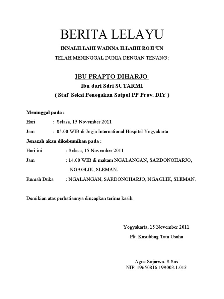 Contoh Surat Lelayu Dalam Bahasa Indonesia - Contoh Seputar Surat