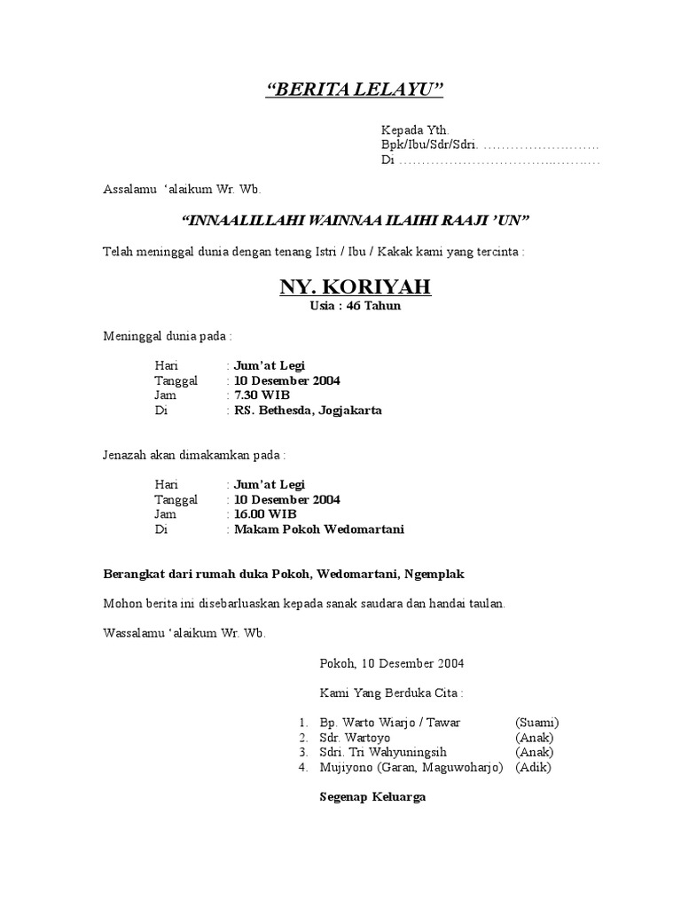 Contoh Surat Lelayu Doc
