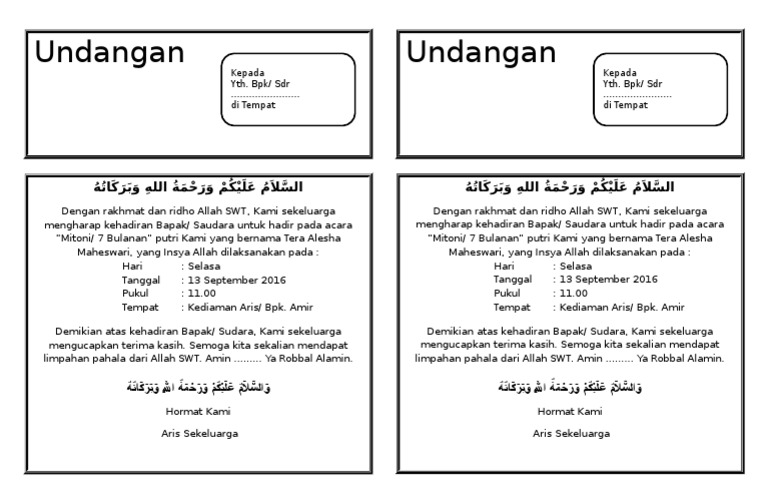 Contoh Undangan Mitoni document