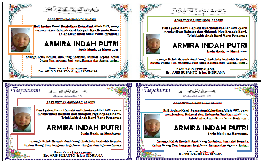 Contoh Kartu Ucapan Aqiqah Berwarna versi Ms. Word | Kartu Ucapan