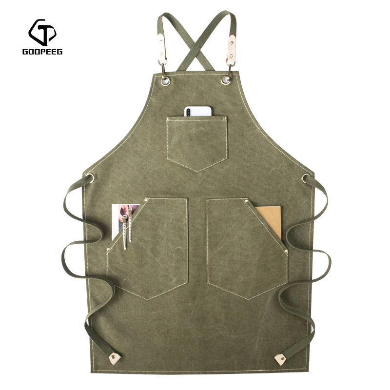 China Custom Personalized Utility Olive Canvas Carpenter Aprons with Leather Strap - China Carpenter Aprons and Canvas Carpenter Apron price