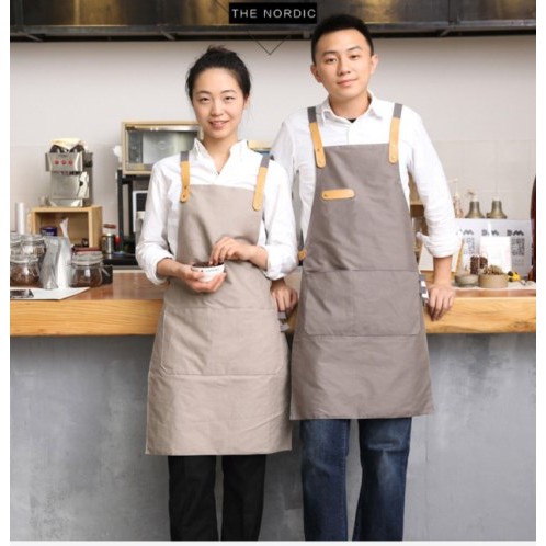 Super Texture Leather Cotton Washed Canvas Apron Coffee Bar Custom | Shopee Singapore