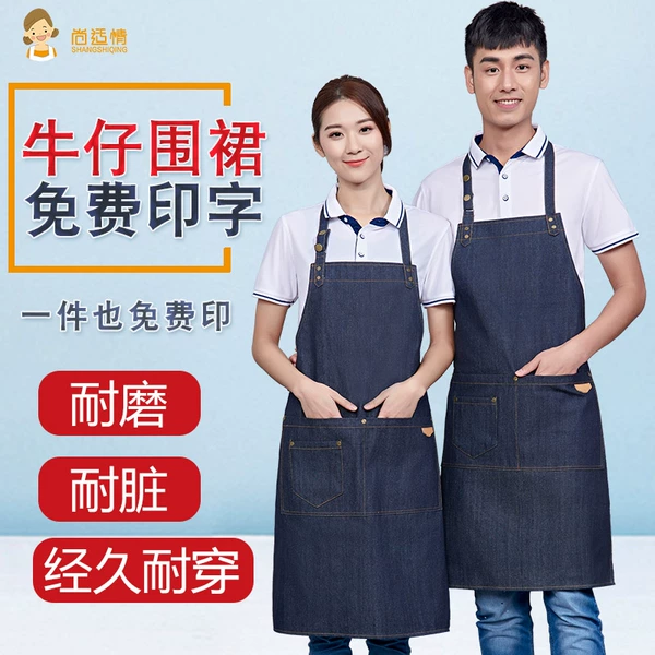 Denim apron custom logo floral manicure hair coffee tea shop waiter work canvas apron printing - buy at the price of $15.88 in aliexpress.com | imall.com