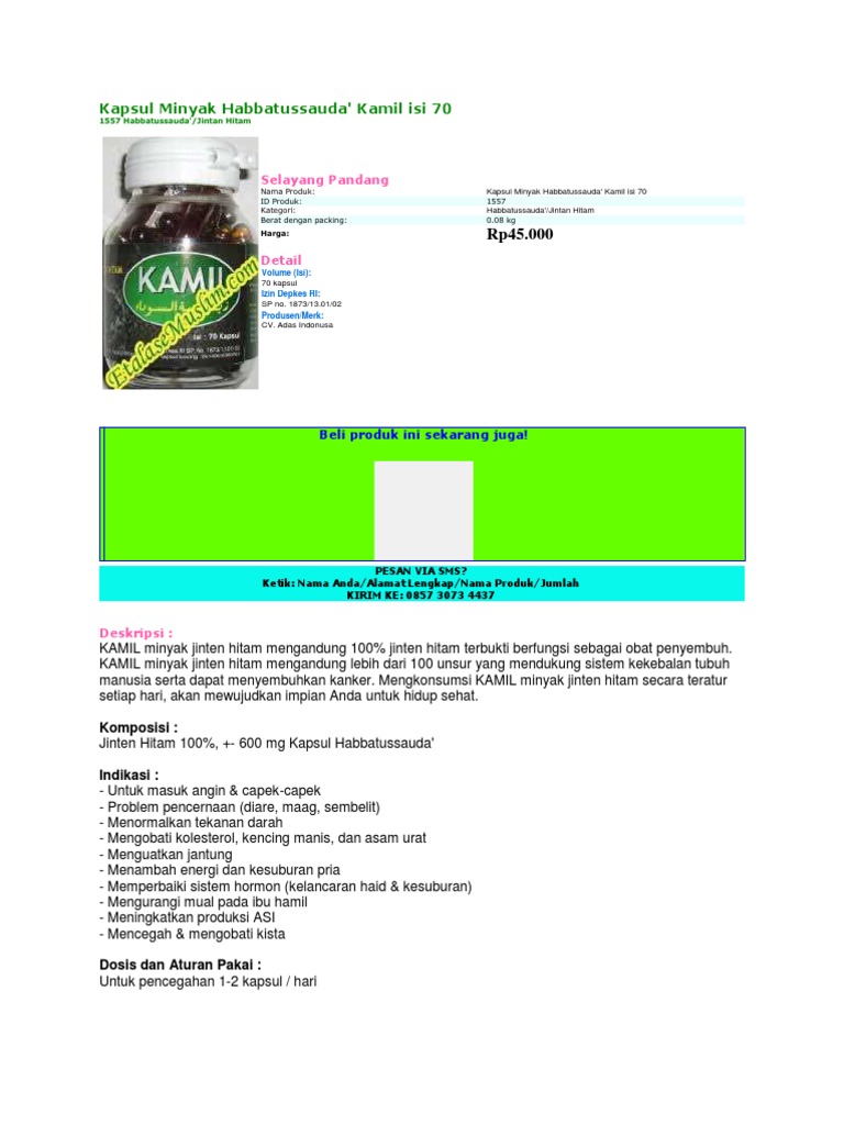 Info terbaru Kamil Habbatussauda Isi 210 Kapsul bergaransi Ralali.com