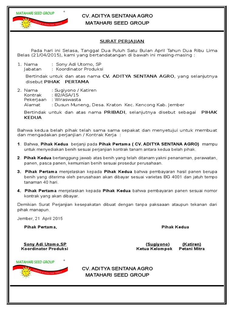 Surat Perjanjian Jatufcxgh Tempo Bg 4001