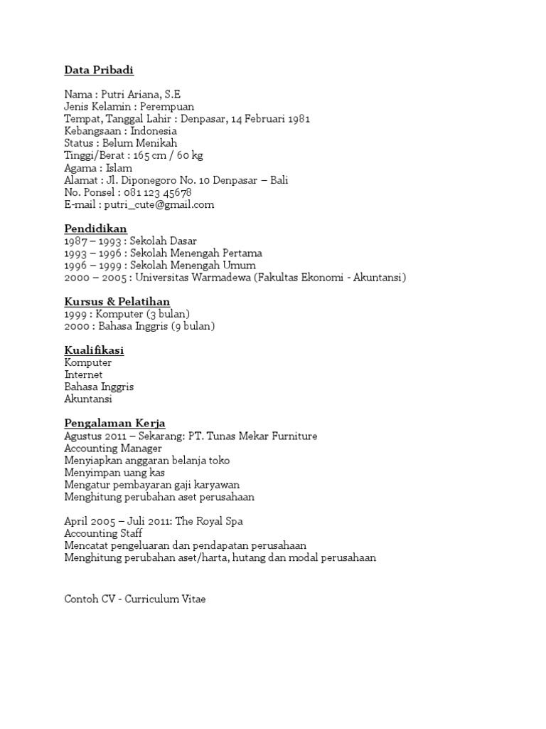 Contoh Cv Lamaran Kerja Menarik Bahasa Indonesia - BEST RESUME EXAMPLES