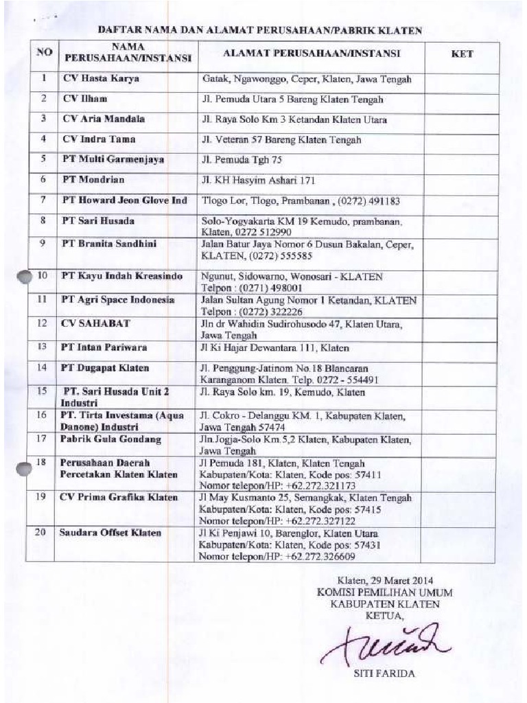 Cv Hasta Karya Kabupaten Klaten Jawa Tengah