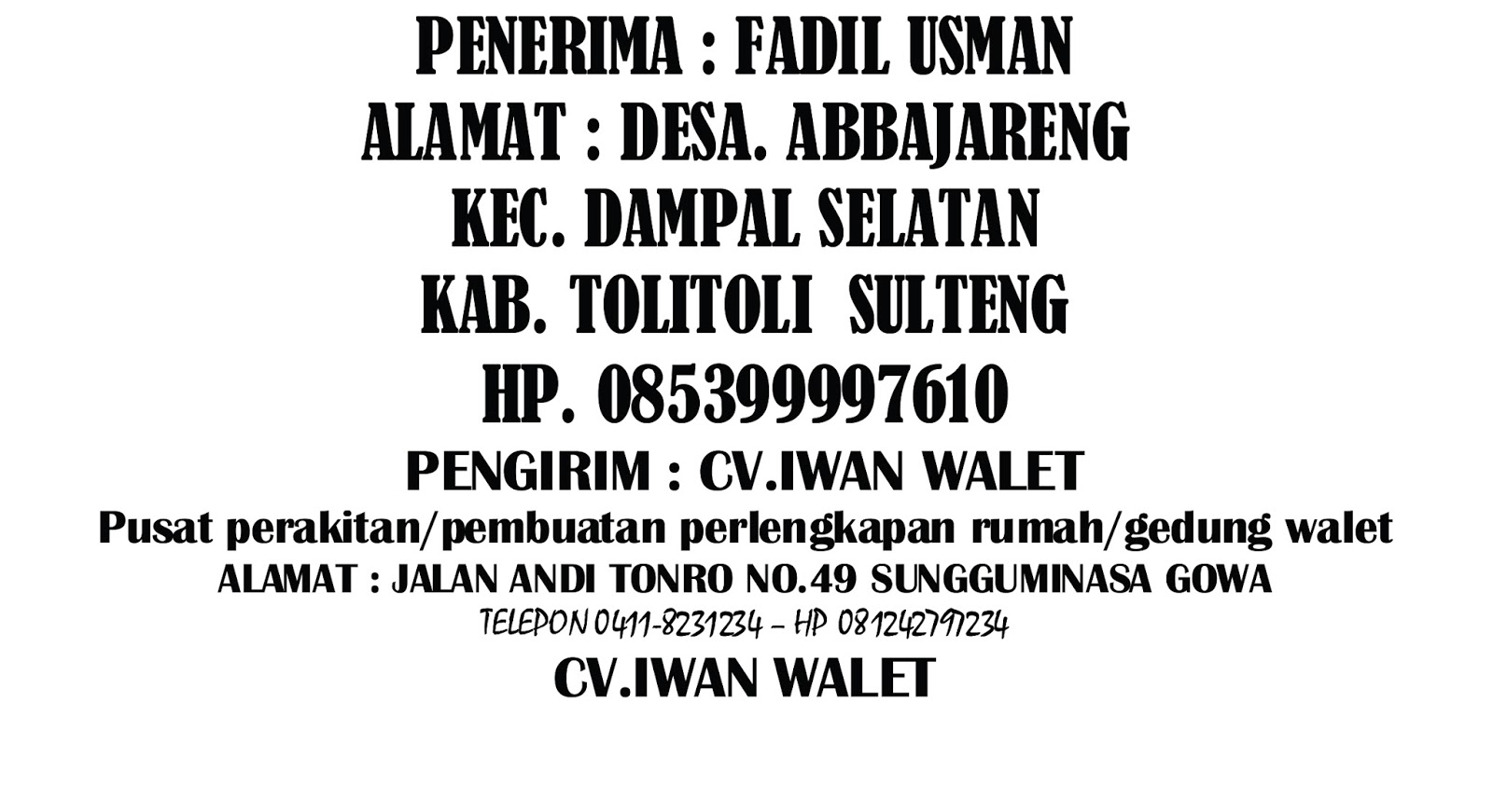 TOKO PERLENGKAPAN RUMAH WALET MAKASSAR: NAMA DAN ALAMAT PEMESAN