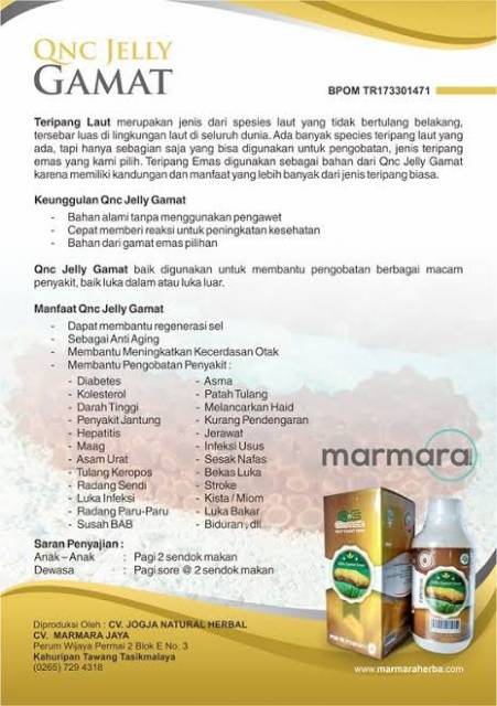 Terbaik Qnc Jelly Gamat Emas ORIGINAL 100 CV. JOGJA NATURAL HERBAL Gamat QnC Asli Izin POM Sale SO di lapak Mustika Shop | Bukalapak