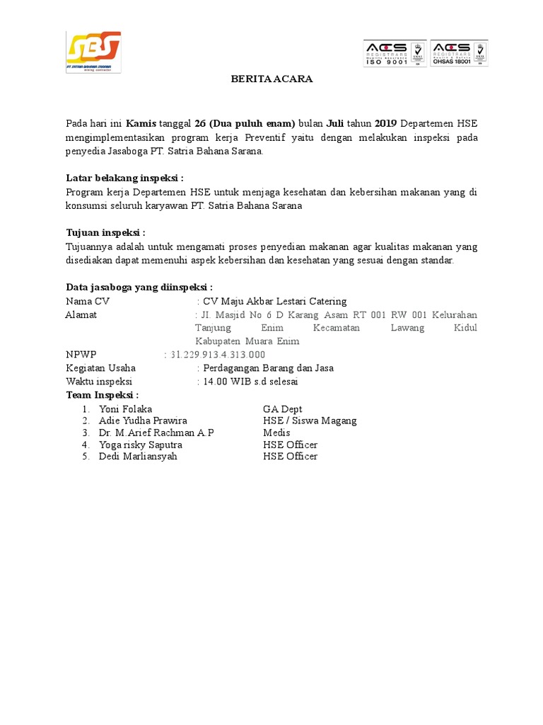 Berita Acara Inspeksi Catering lestari juli 2019.doc