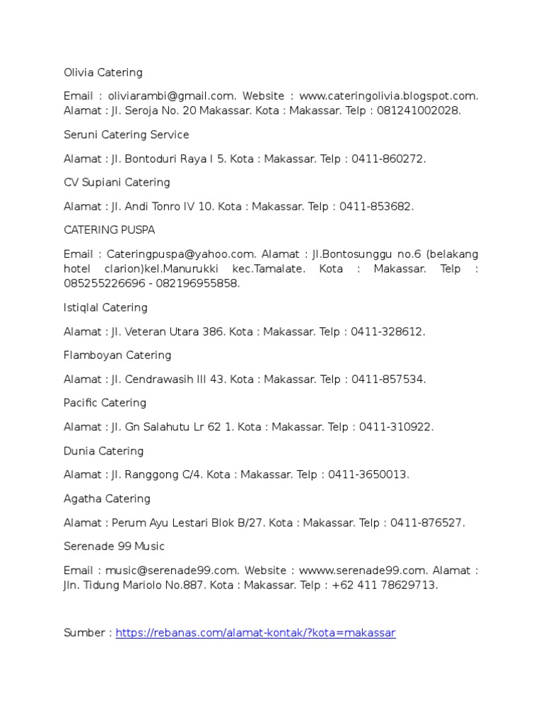 Info Daftar Alamat Dan Nomor Telepon Catering Jakarta - Pay To Pennies