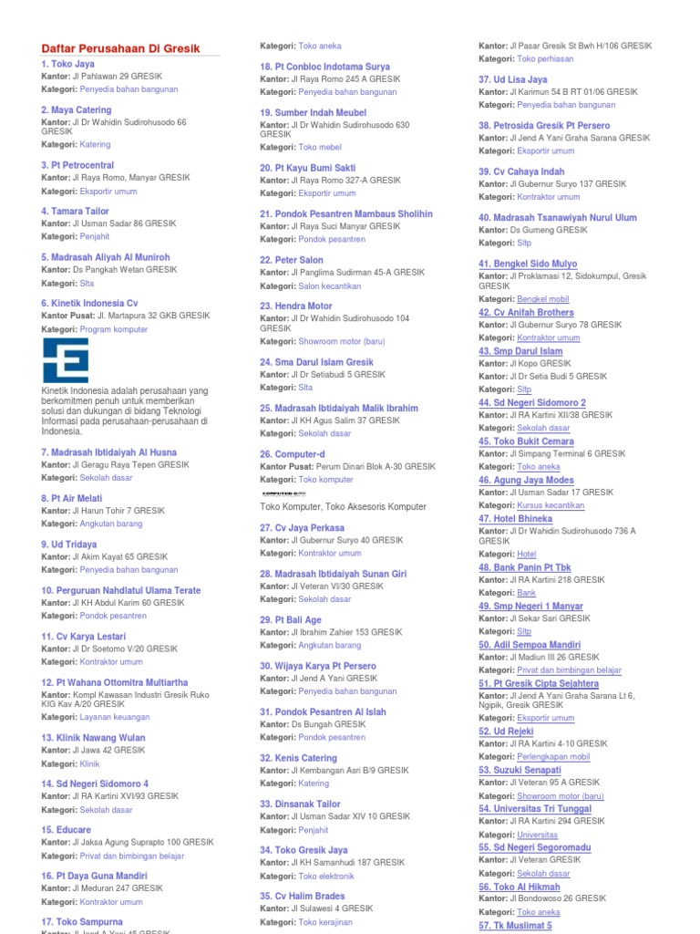 Daftar Perusahaan Di Gresik