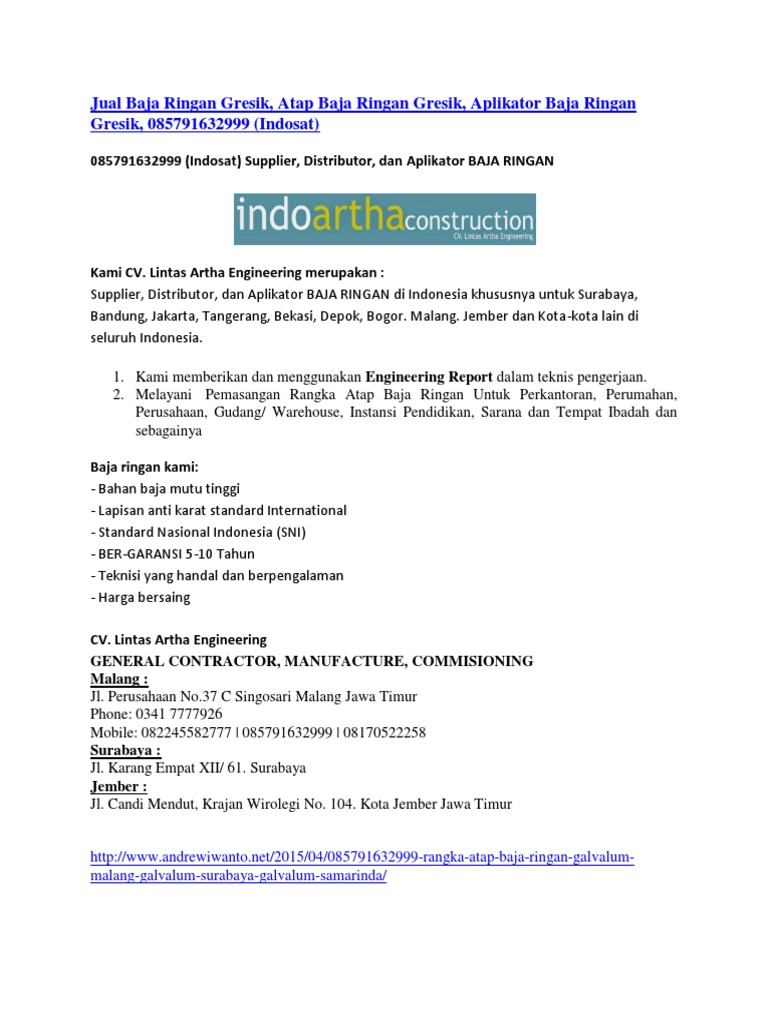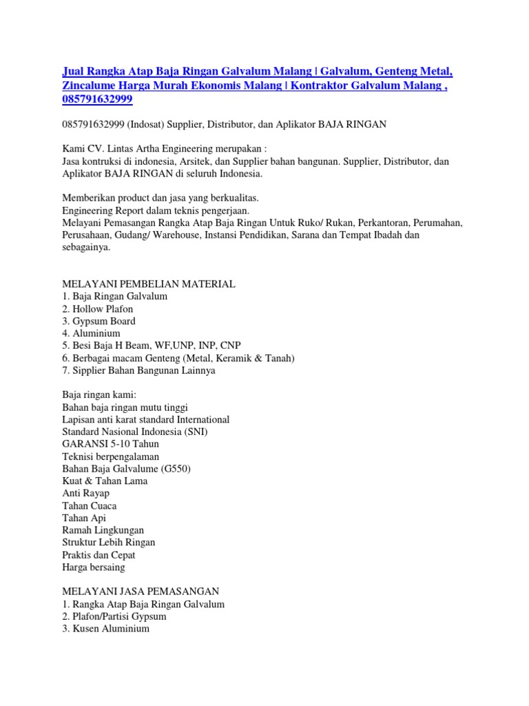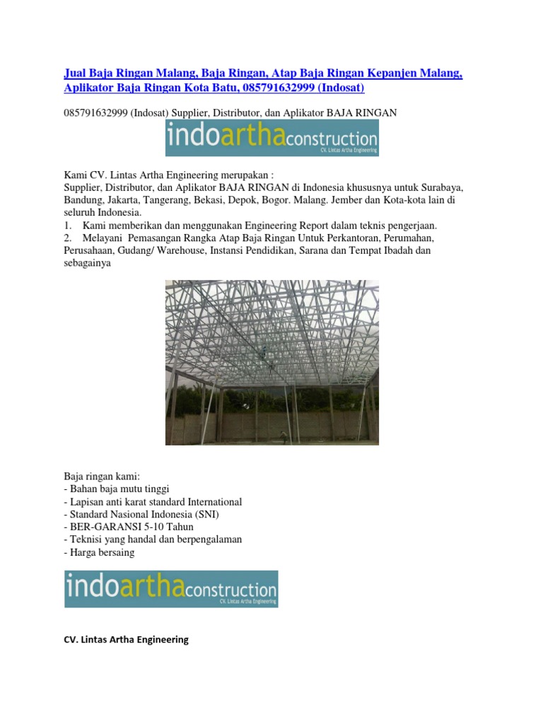 Jual Baja Ringan Malang, Baja Ringan, Atap Baja Ringan Kepanjen Malang, Aplikator Baja Ringan Kota Batu, 085791632999 (Indosat) - [PDF Document]