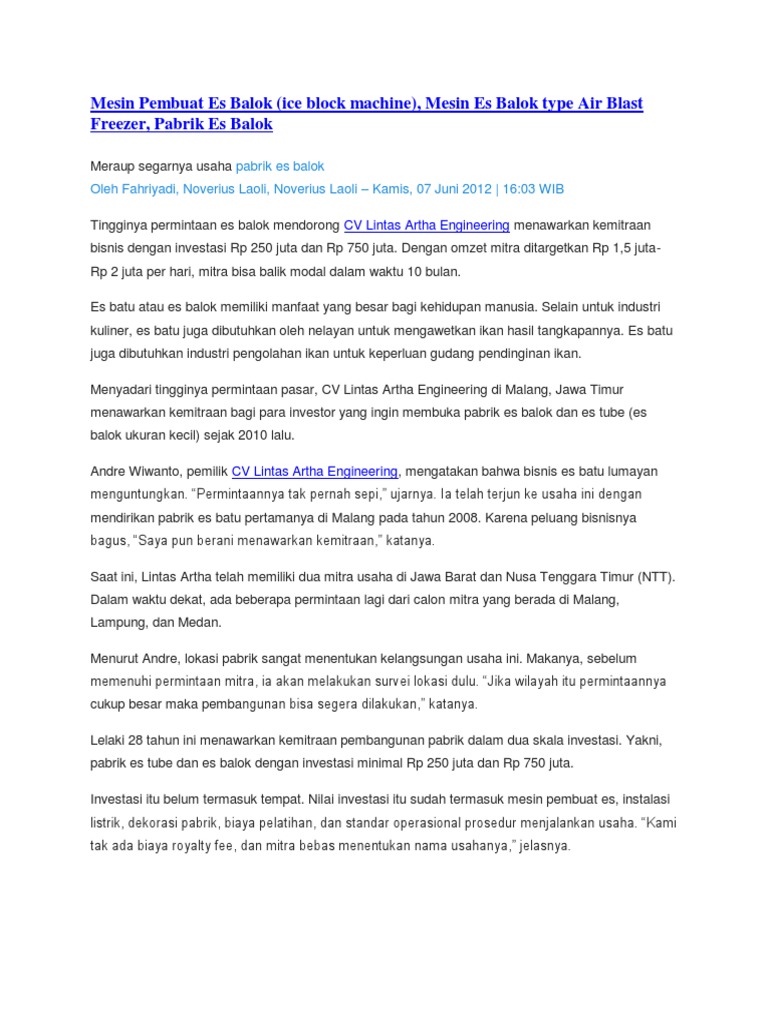 Meraup segarnya usaha pabrik es balok