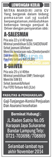 Lowongan Kerja CV. Mitra Mandiri Jaya