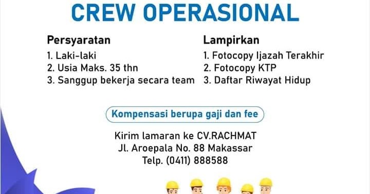 Lowongan Kerja Crew Operasional di CV Rachmat - Lowongan Kerja Makassar