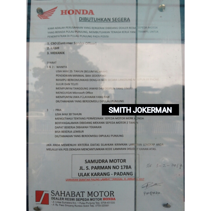 Lowongan Samudra Motor - Kasir & Costumer Service Officer Februari 2017 - SUMBAR LOKER