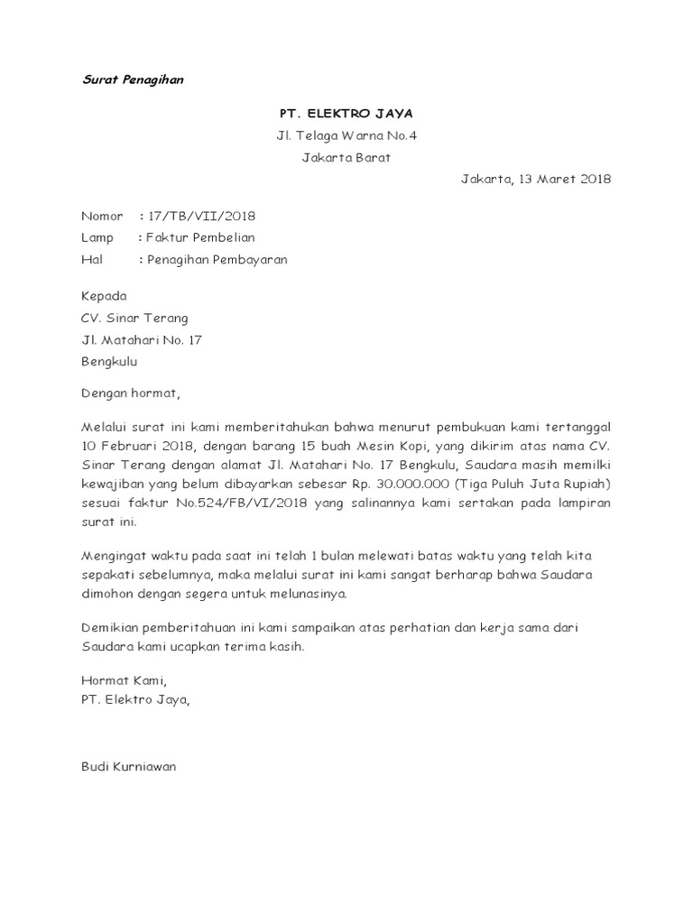 COHTOH SURAT - SURAT NIAGA