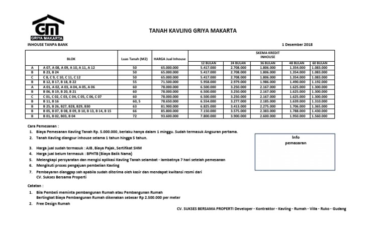 Tanah Kavling Griya Makarta: Info pemasaran