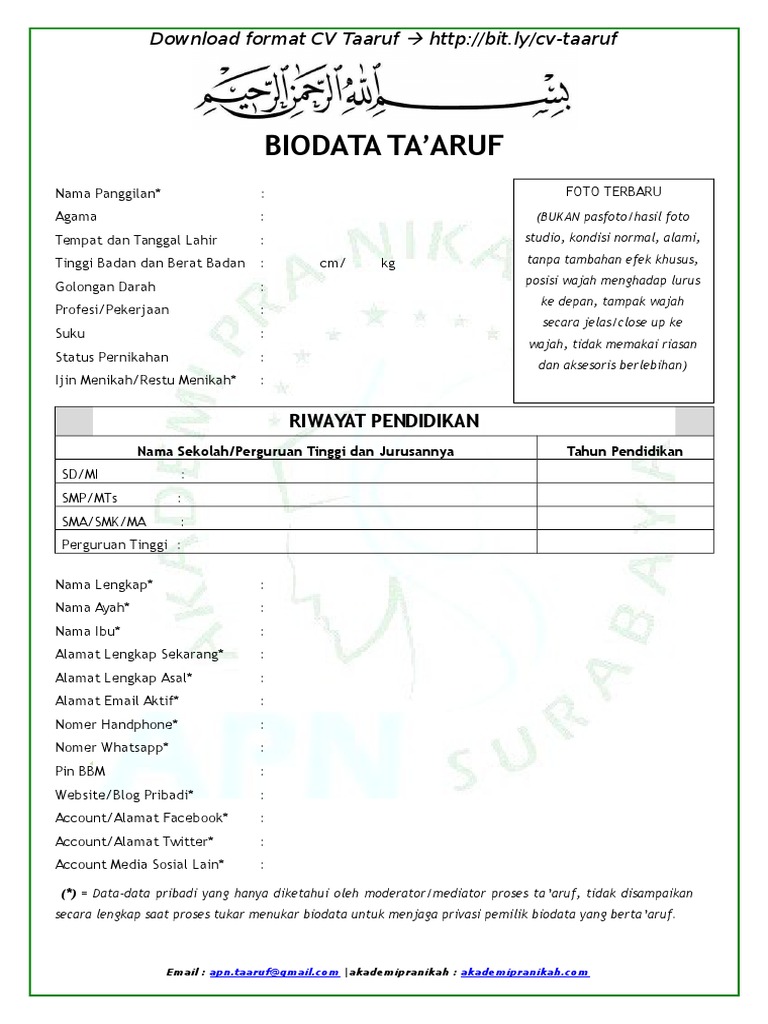 DOC) Format Biodata Taaruf | Sofyan Nur Hardiansyah - Academia.edu
