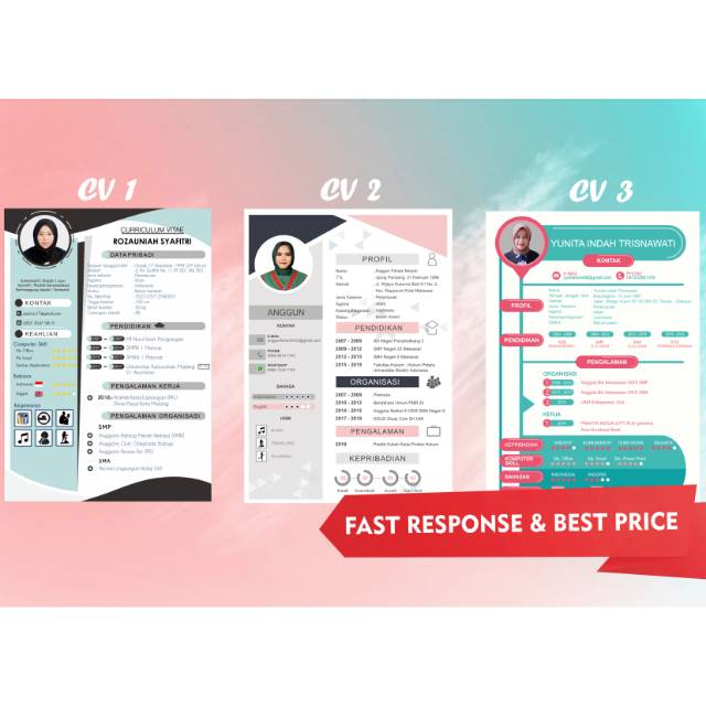 Jasa Pembuatan CV (Curriculum Vitae) Hanya 60K/3 desain Pengerjaan 1 Hari
