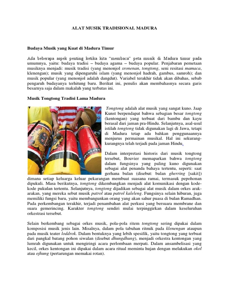 Alat Musik Tradisional Madura Gambar Dan Penjelasannya