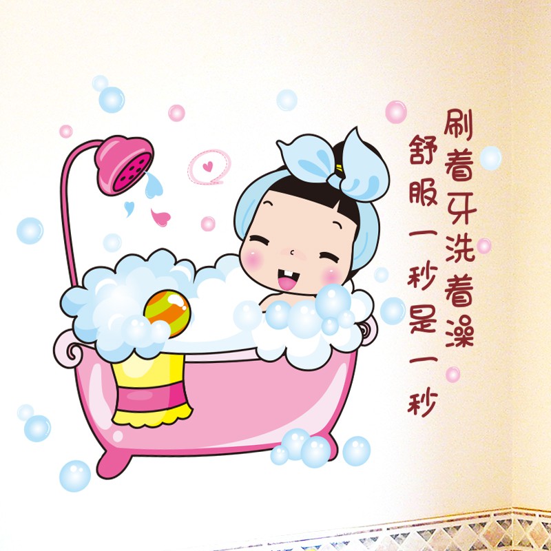 Wall sticker, Mandi kartun lucu kreatif menancapkan stiker dinding, Kamar anak-a | Shopee Indonesia