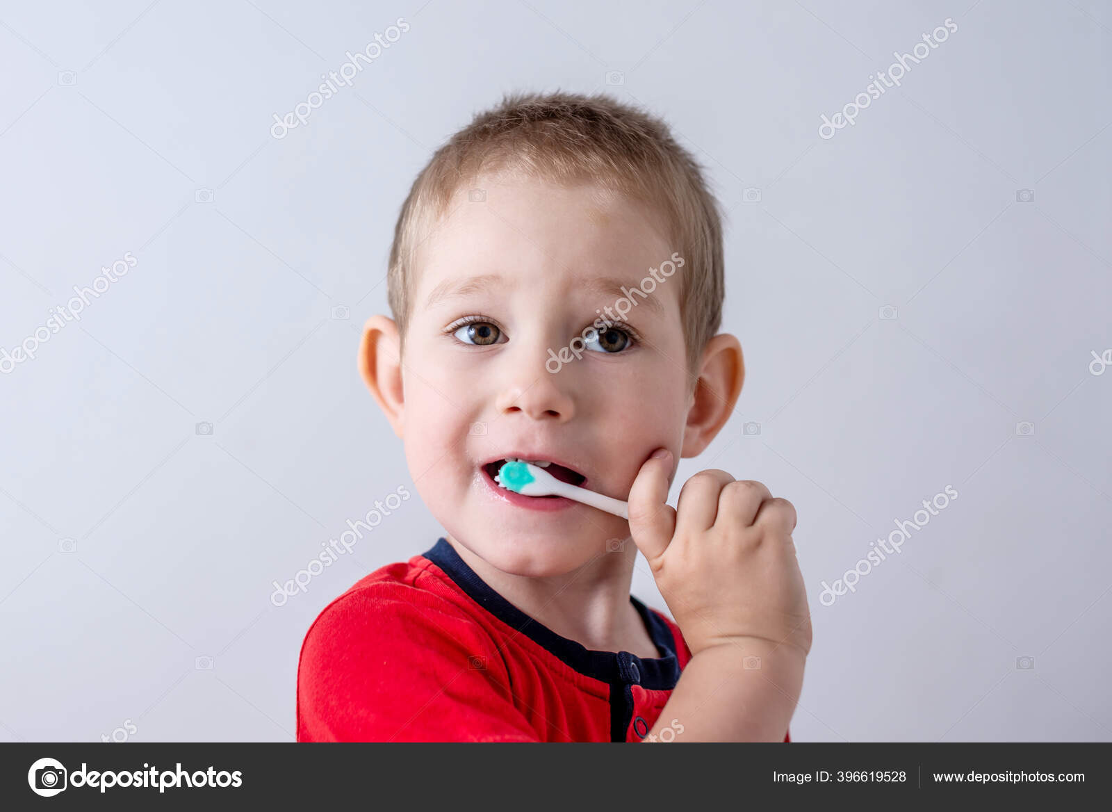 Seorang Anak Kecil Belajar Menyikat Gigi Menggunakan Sikat Gigi Konsep — Stok Foto © artoleshko #396619528