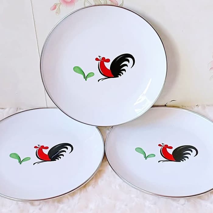 piring makan saji enamel ayam jago kukuruyuk sedang 20 cm jadul seng | Shopee Indonesia
