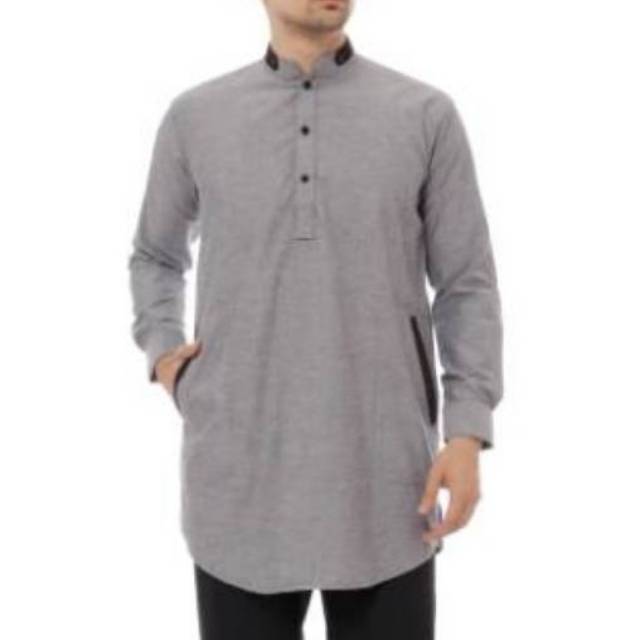 Baju Koko Busana Muslim Pria Cowok Cowo Laki-Laki Lengan Panjang Warna Abu RYR 010 RZ | Shopee Indonesia