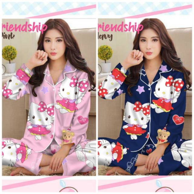 Baju tidur hello kitty /piyama helo kitty/ baju tidur lengan panjang | Shopee Indonesia