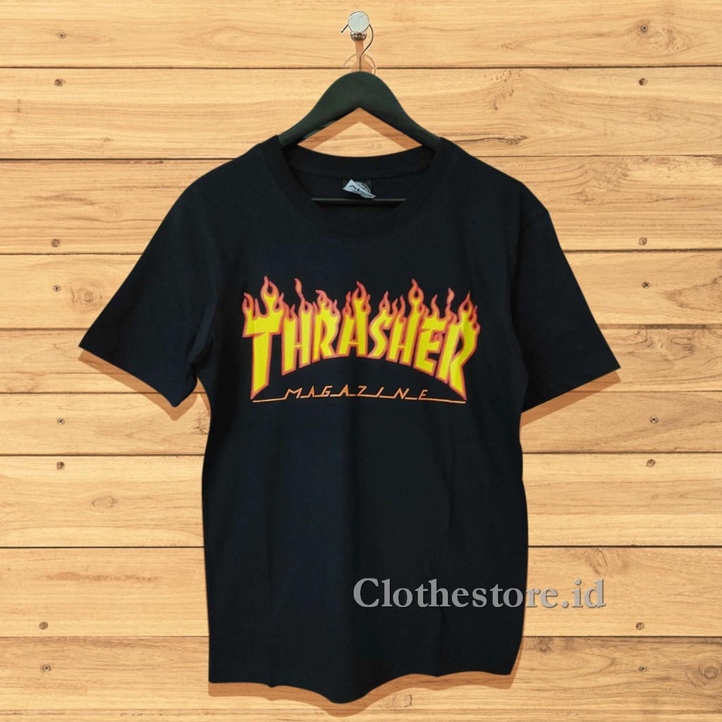 1139 KAOS T-SHIRT THRASHER FLAME API KUNING BLACK KAOS THRASHER BAJU THRASHER | Shopee Indonesia