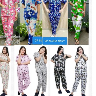 BAJU TIDUR PIYAMA DEWASA CP LENGAN PENDEK KATUN DORAEMON/KEROPPI/KITTY/HK/STITCH | Shopee Indonesia