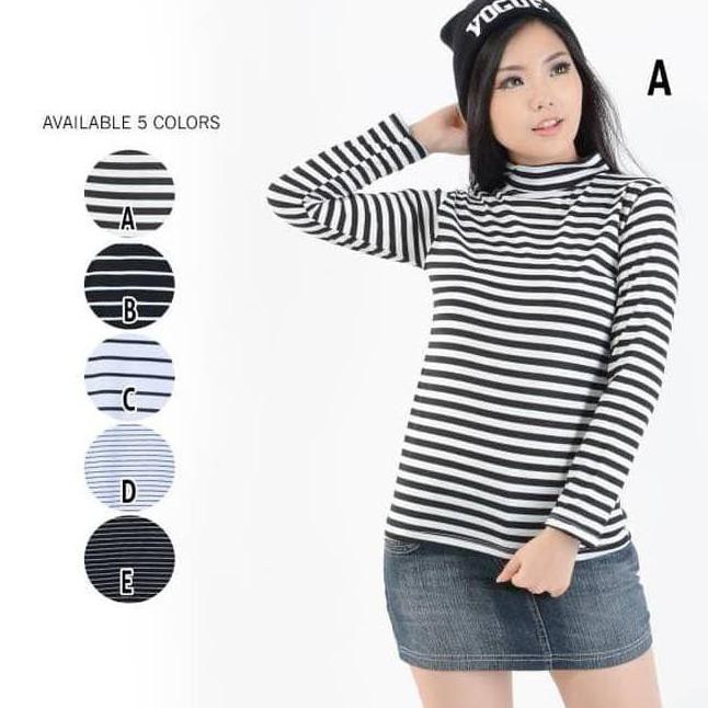 MODEL BAJU YANG LAGI TREND BAJU ATASAN KAOS SALUR TURTLE NECK MURAH WANITA LENGAN PANJANG STEVI - | Shopee Indonesia