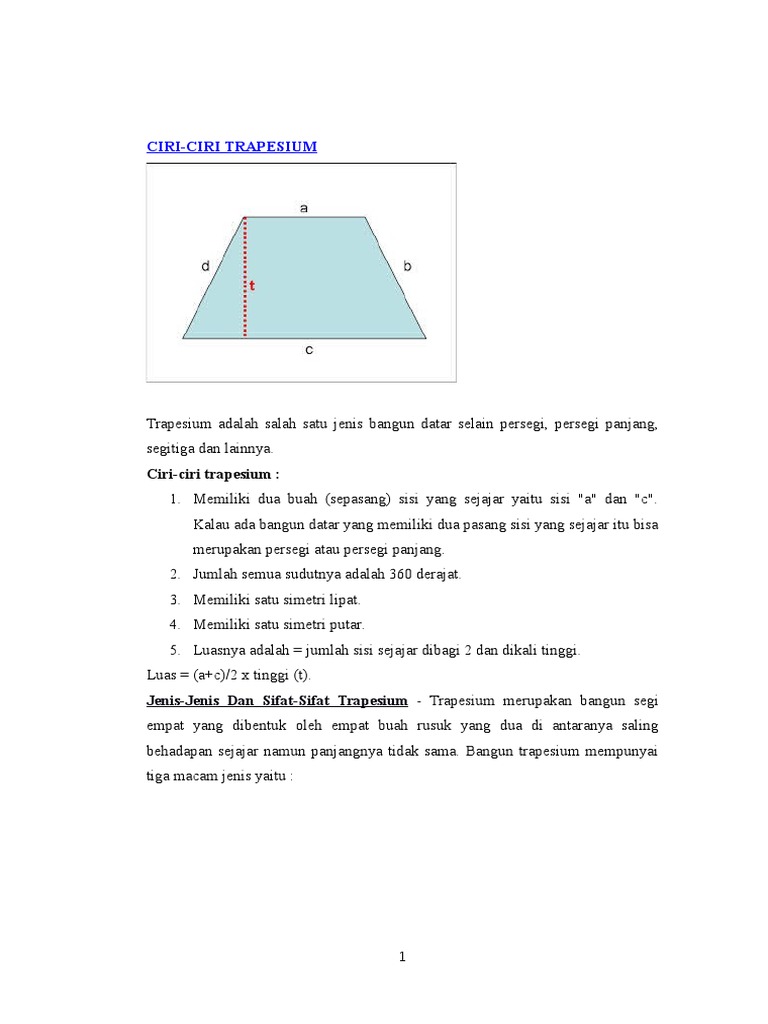 Ciri-ciri Trapesium - De Eka
