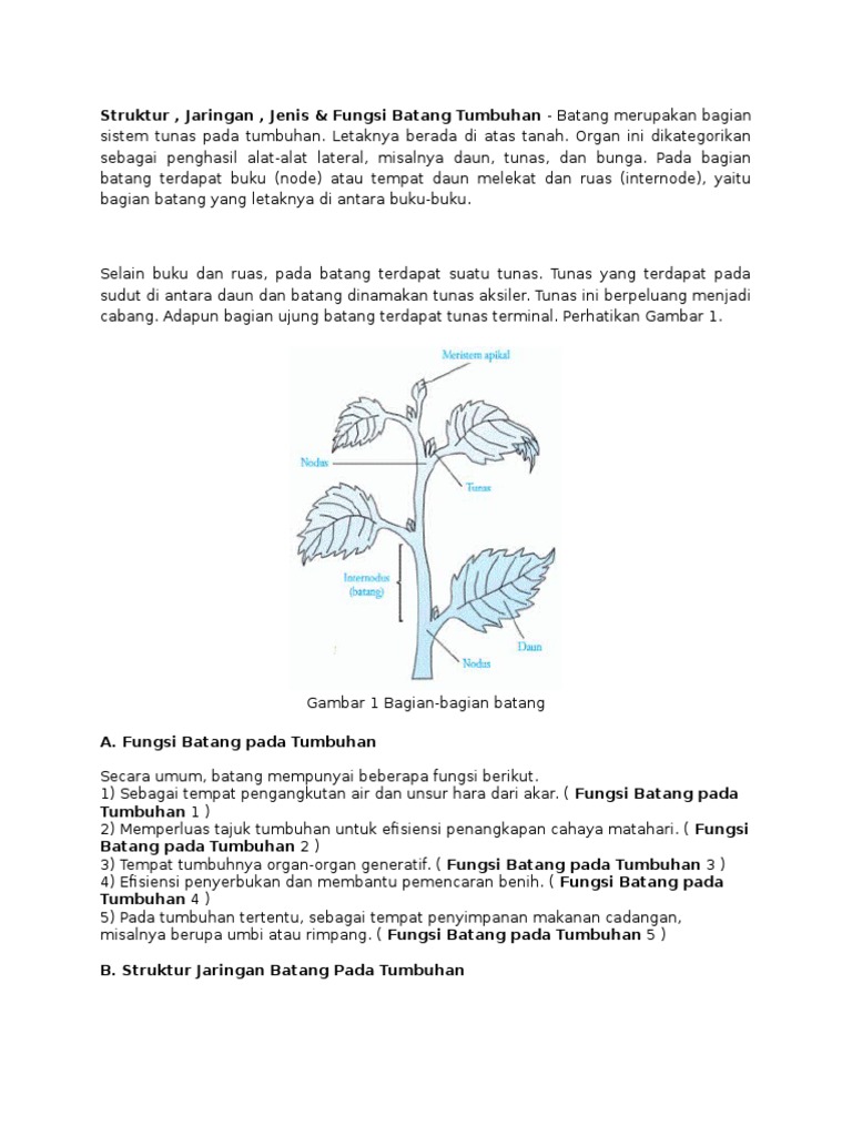 Bagian Bagian Batang Pada Tumbuhan - Berbagai Bagian Penting