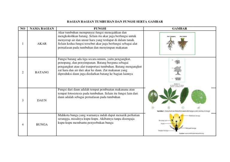Bagian Bagian Tumbuhan Dan Fungsi Serta Gambar