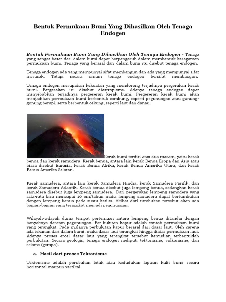 Tenaga Endogen – Vulkanisme, Seisme Dan Tektoisme Lengkap | TutorialBahasaInggris.Co.Id