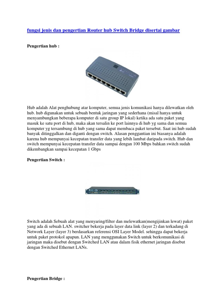 Fungsi Jenis Dan Pengertian Router Hub Switch Bridge