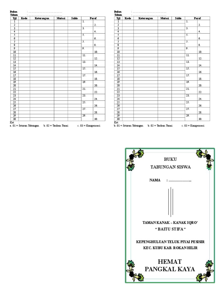 Download Contoh Format Buku Tabungan PAUD TK KOBER Terbaru Tahun 2015 | Buku, Tabungan, Kepala sekolah