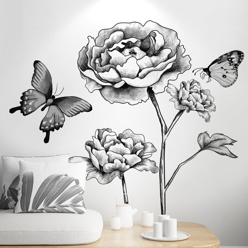 Sketsa yang dilukis dengan tangan peony modern minimalis bunga yang dilukis dengan tangan ruang tamu koridor teras stiker dinding kreatif wallpaper stiker | Shopee Indonesia