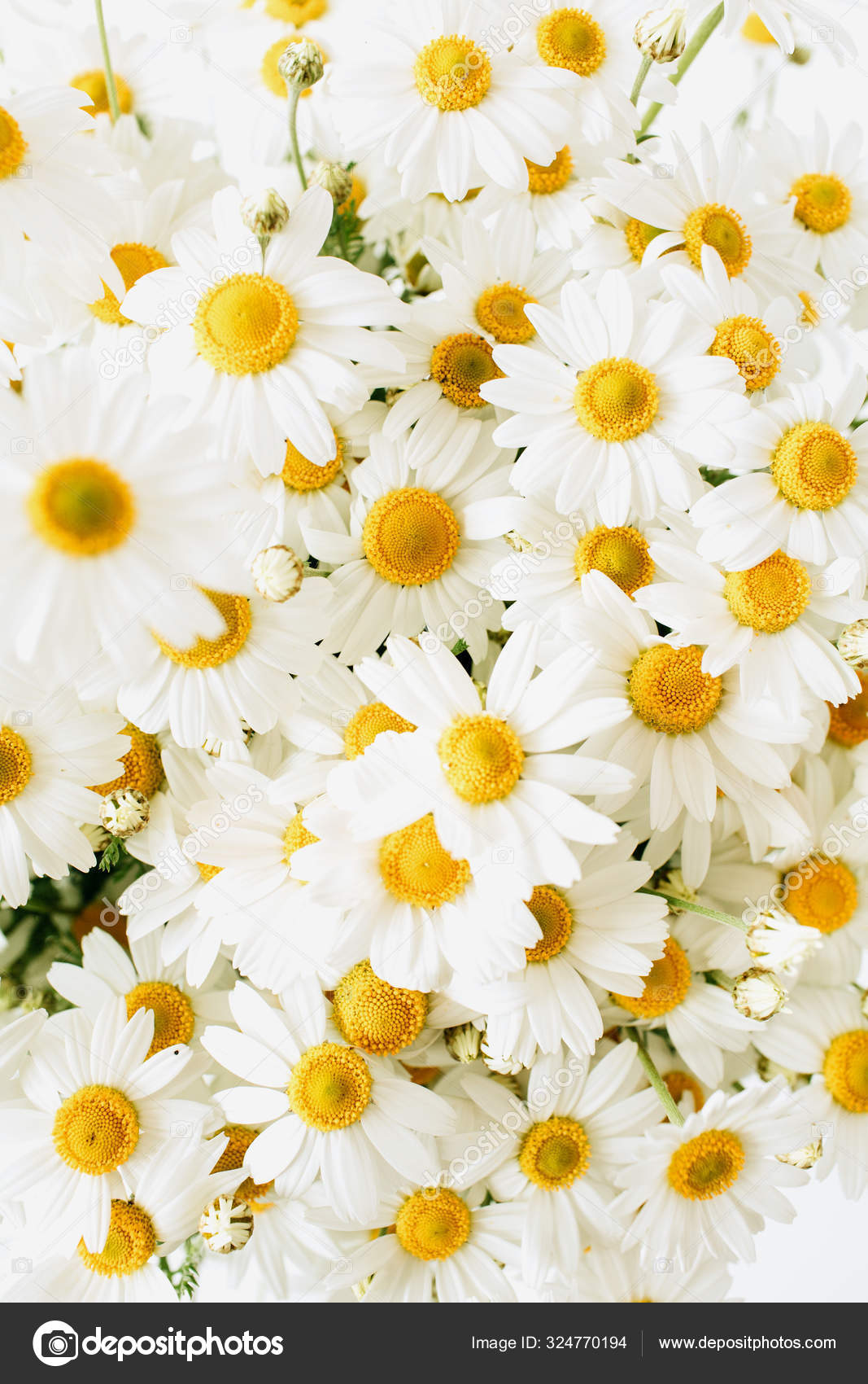 Bunga Chamomile Daisy Dengan Latar Belakang Putih Komposisi Bunga Terkecil — Stok Foto © maximleshkovich #324770194
