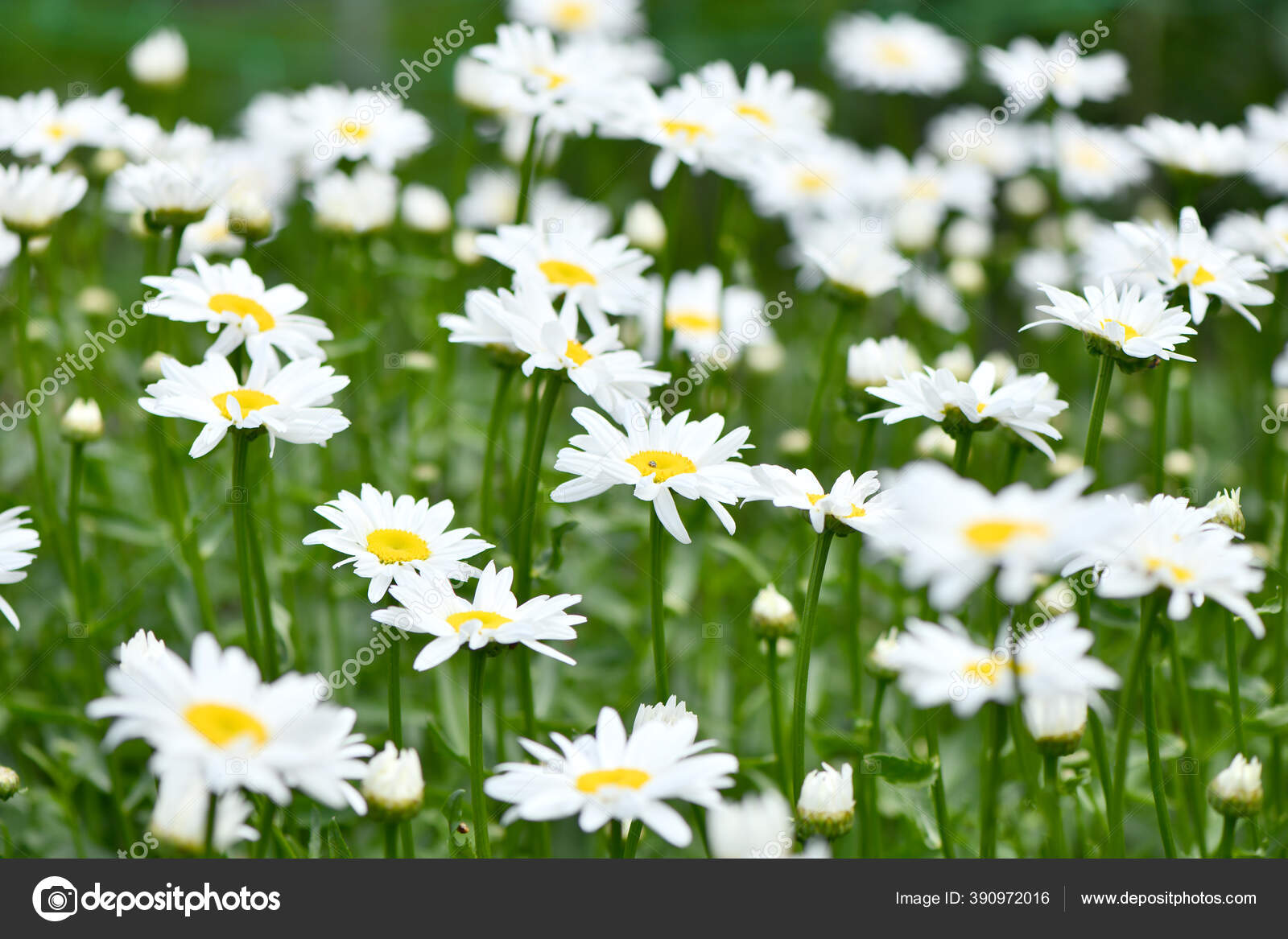 Bunga Chamomile Padang Rumput Hijau Daisy Dox Eye Common Daisy — Stok Foto © akova777 #390972016