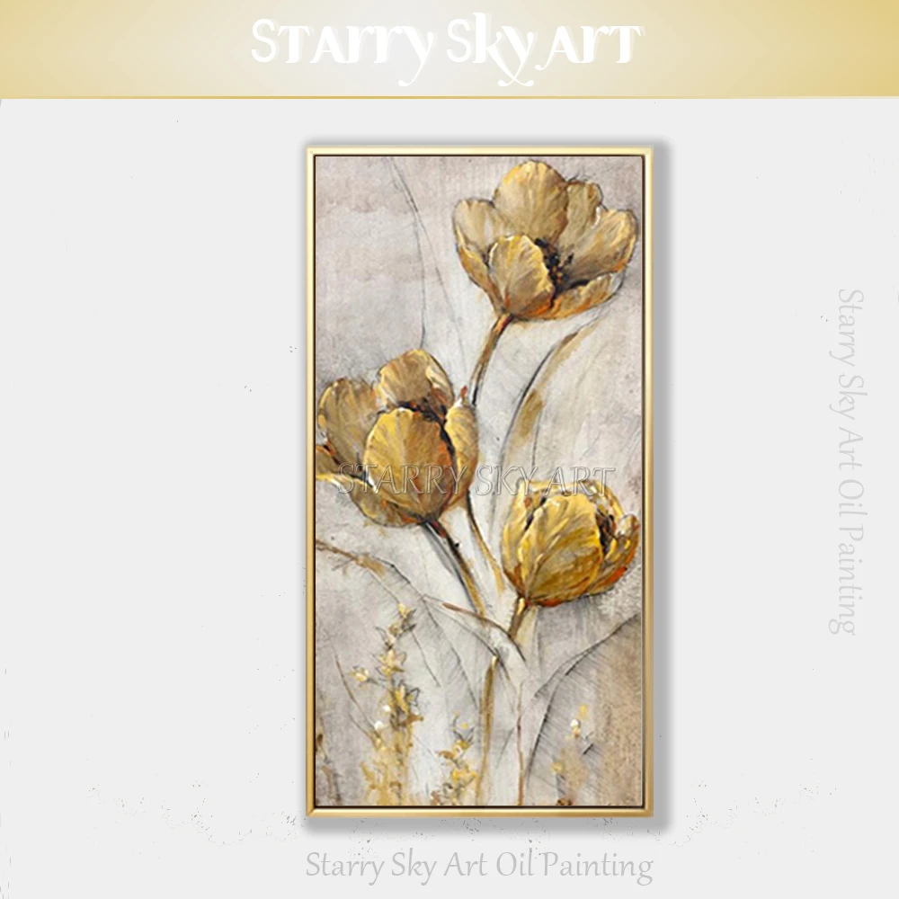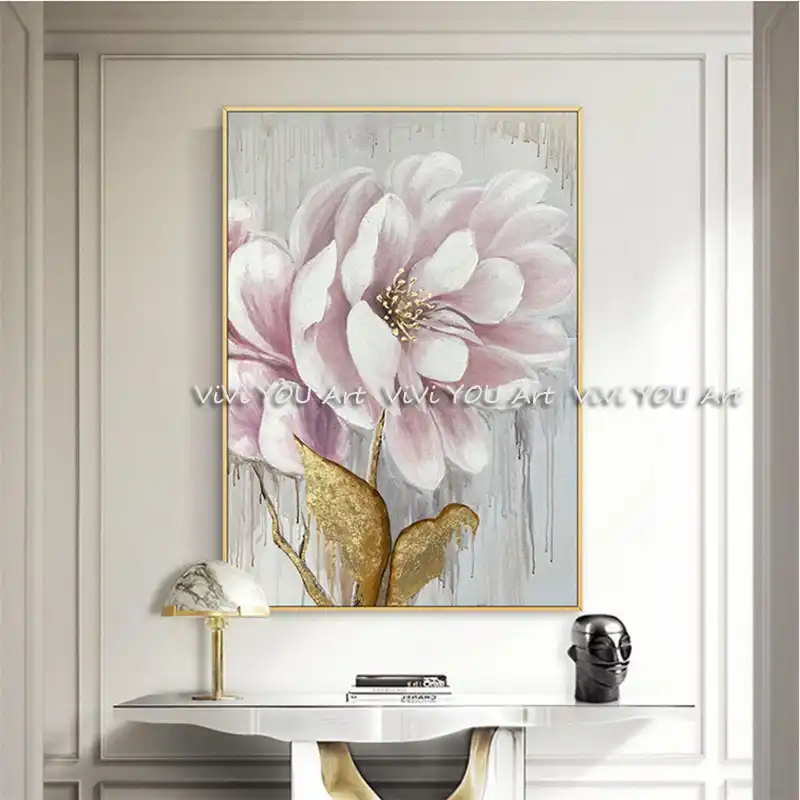 Hand Painted Berkualitas Tinggi Bunga Gambar Tidk Bunga Emas Gambar Emas Buatan Tangan Bunga Lukisan Minyak untuk Ruang Tamu|Painting & Calligraphy| - AliExpress