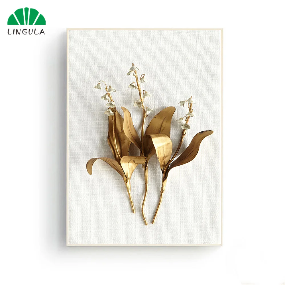 Abstrak Bunga Lukisan Kanvas Seni Cetak Bunga Emas 3D Kanvas Poster Nordic Dekorasi Rumah Dinding Gambar untuk Ruang Tamu|Painting & Calligraphy| - AliExpress